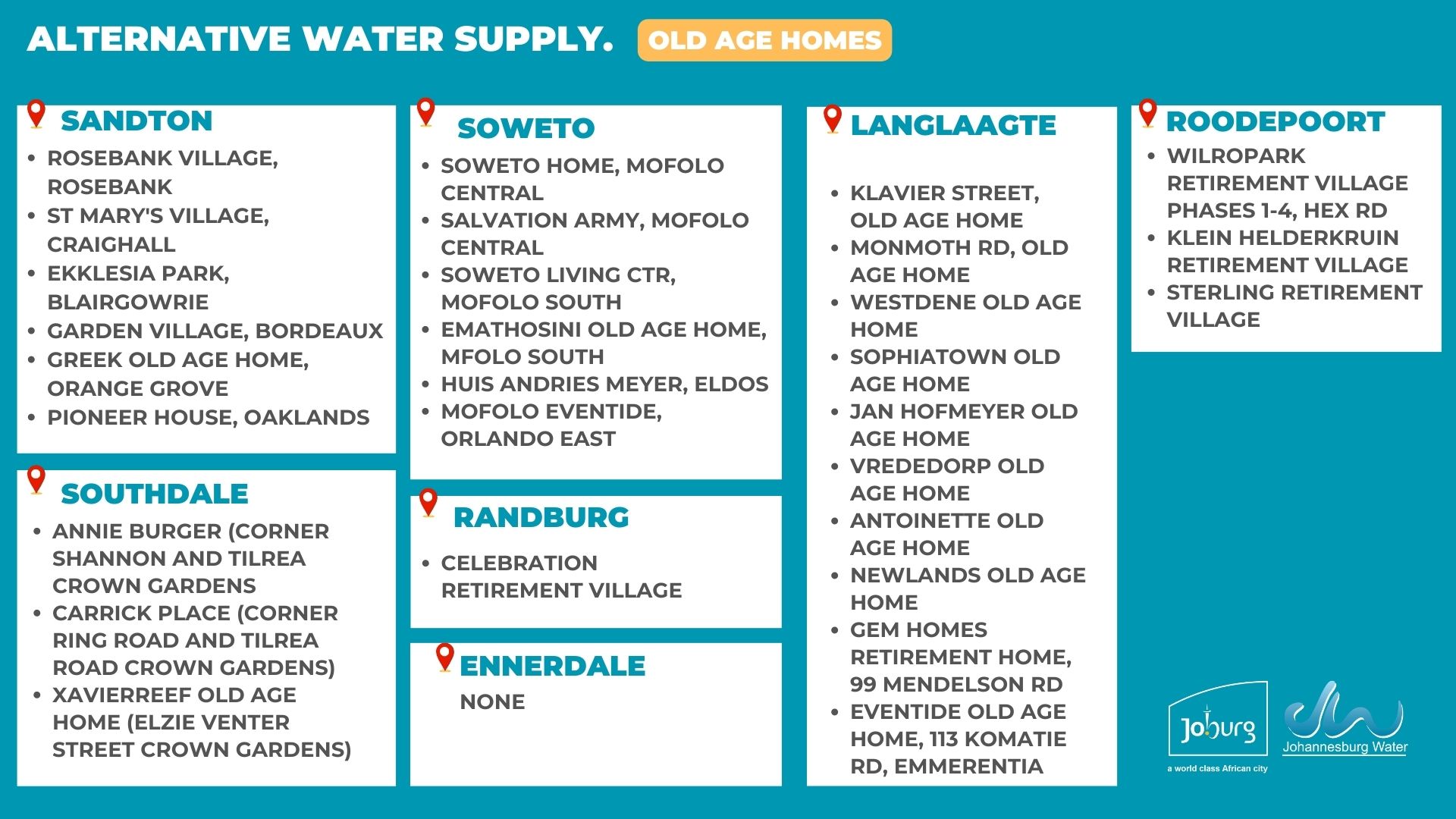 Systems which are still critical include Crown Gardens, Commando, and the Randburg/Roodepoort region. The entity continues to deploy additional water tankers to these areas and will continue to monitor them.