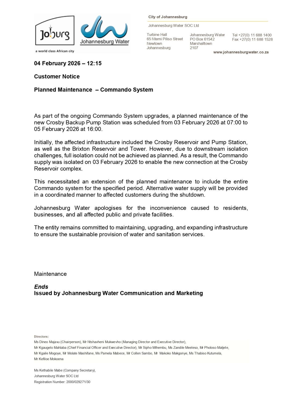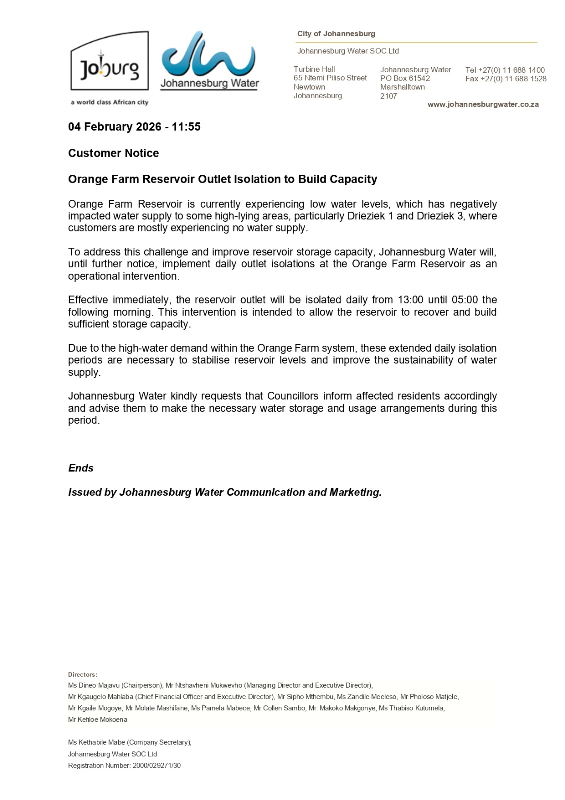 Customer Notice 4 February 2026