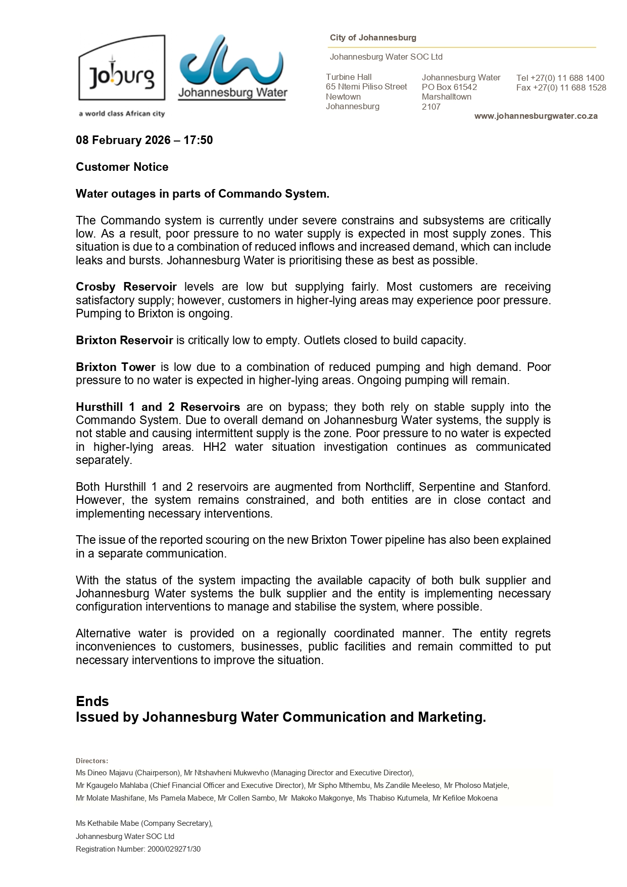 Copyright © 2025 | Johannesburg Water SOC Ltd. All rights reserved. Site by Joren Digital  | Read the Website Usage  Privacy Policy