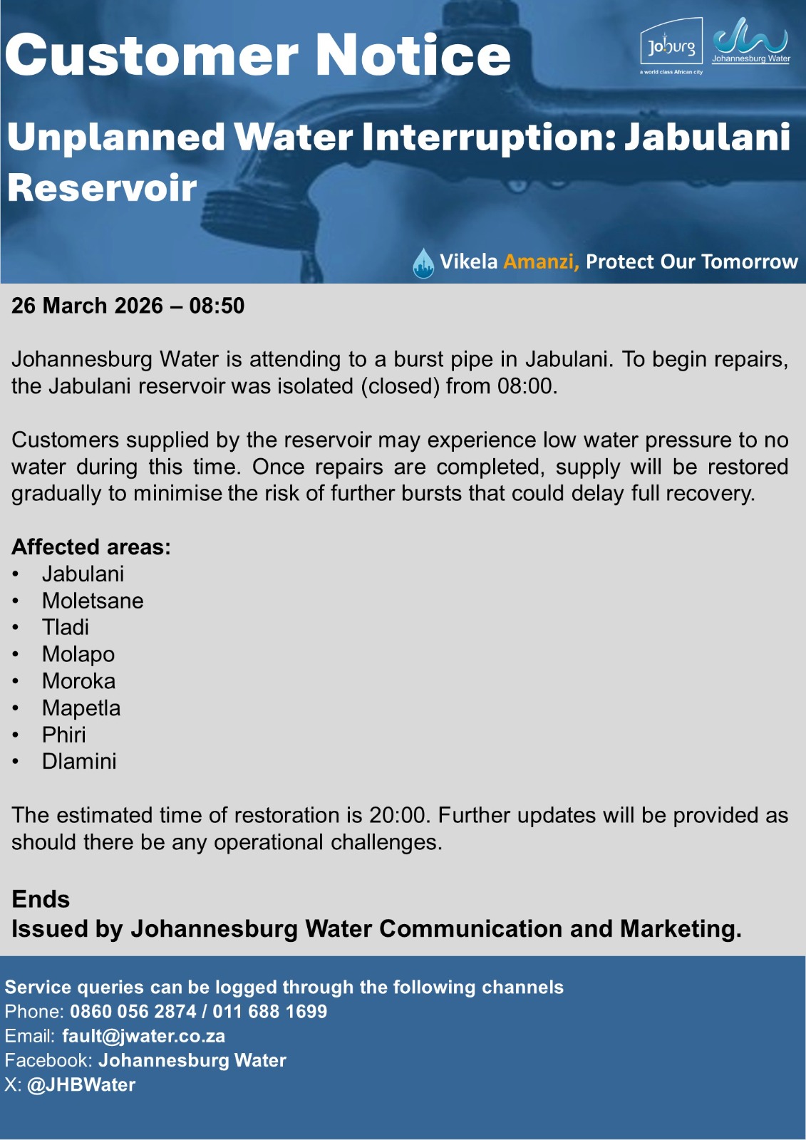 Customer Notice 26 March