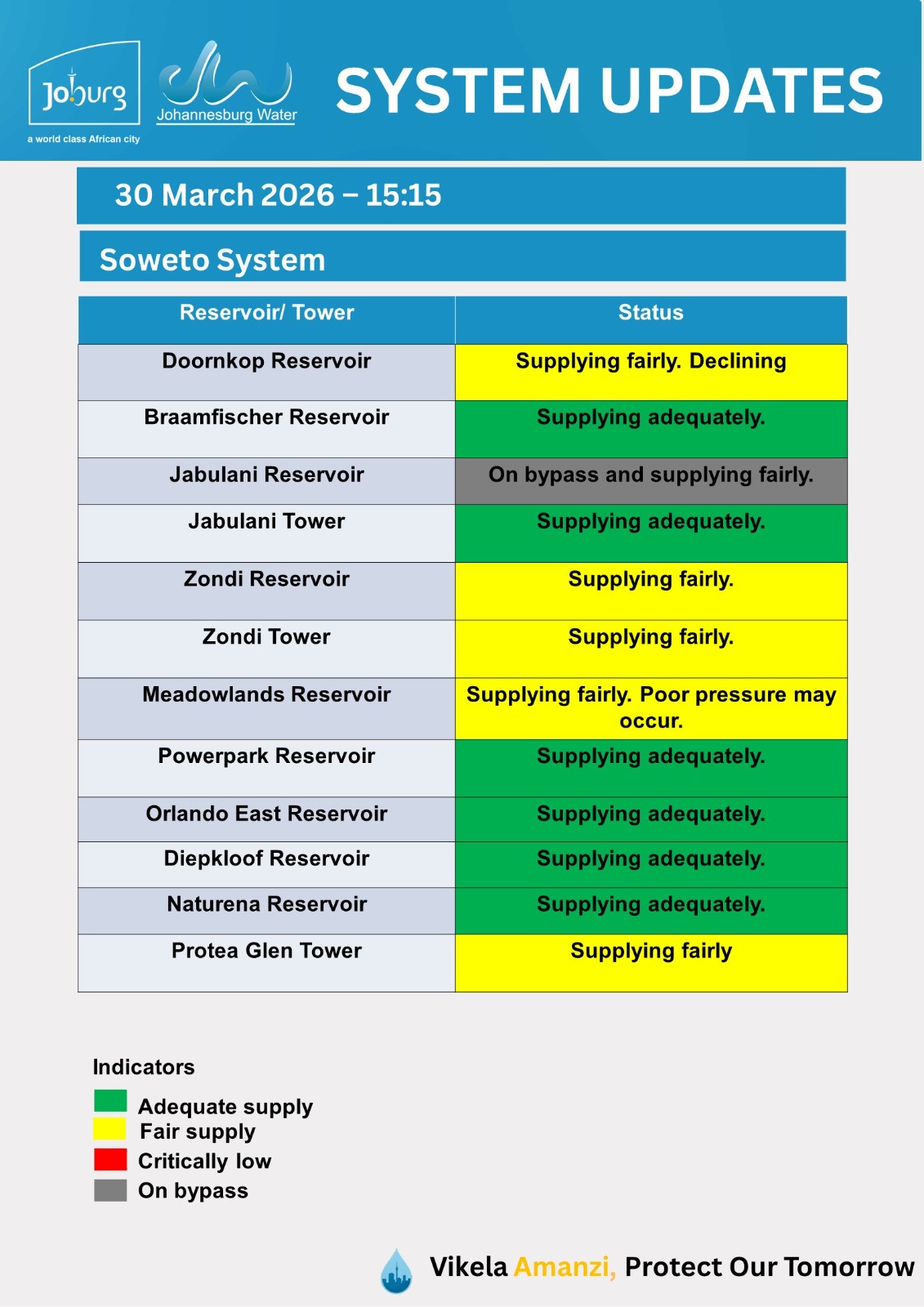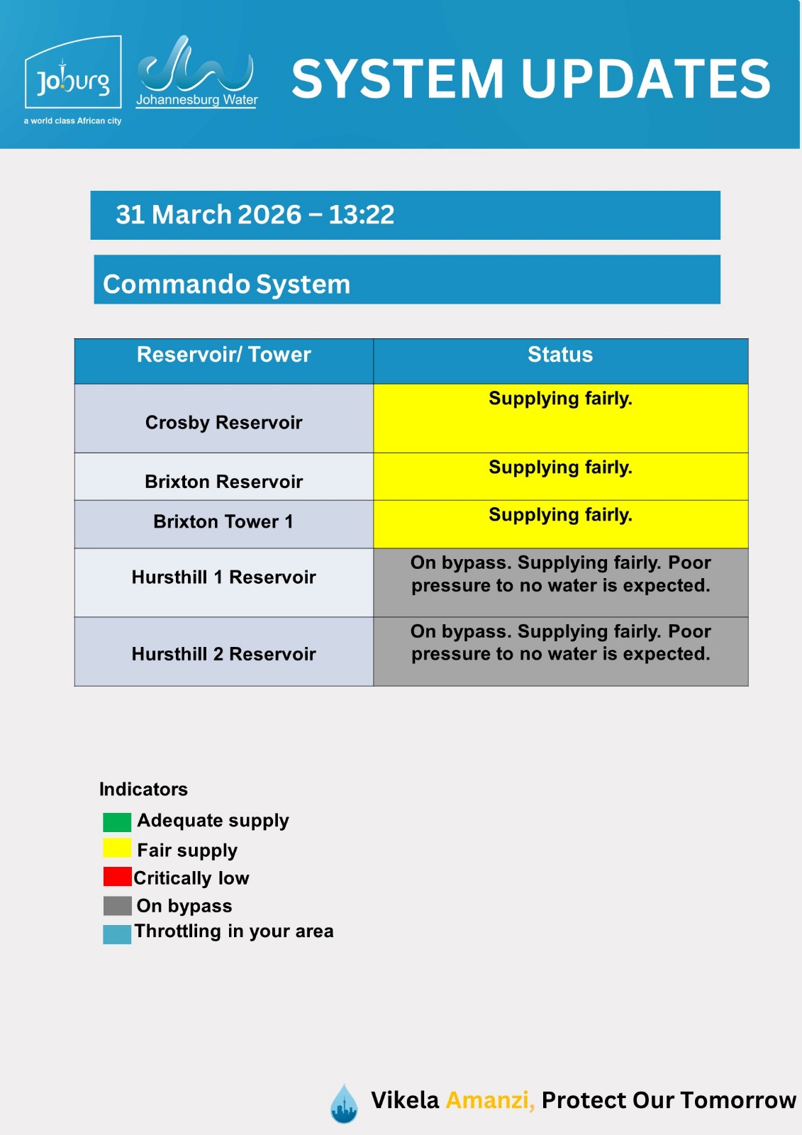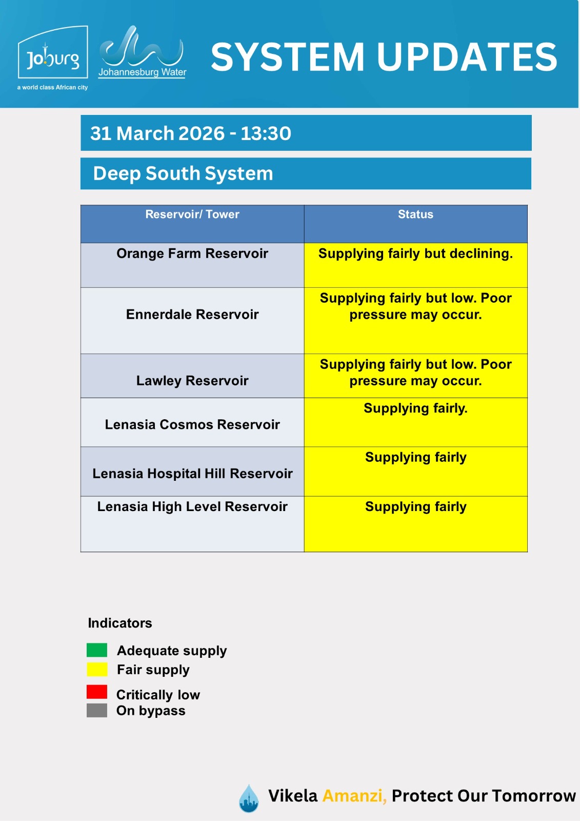 Please use the fault@jwater.co.za for logging water related incidents only