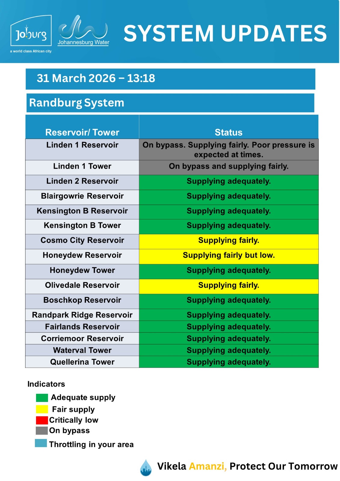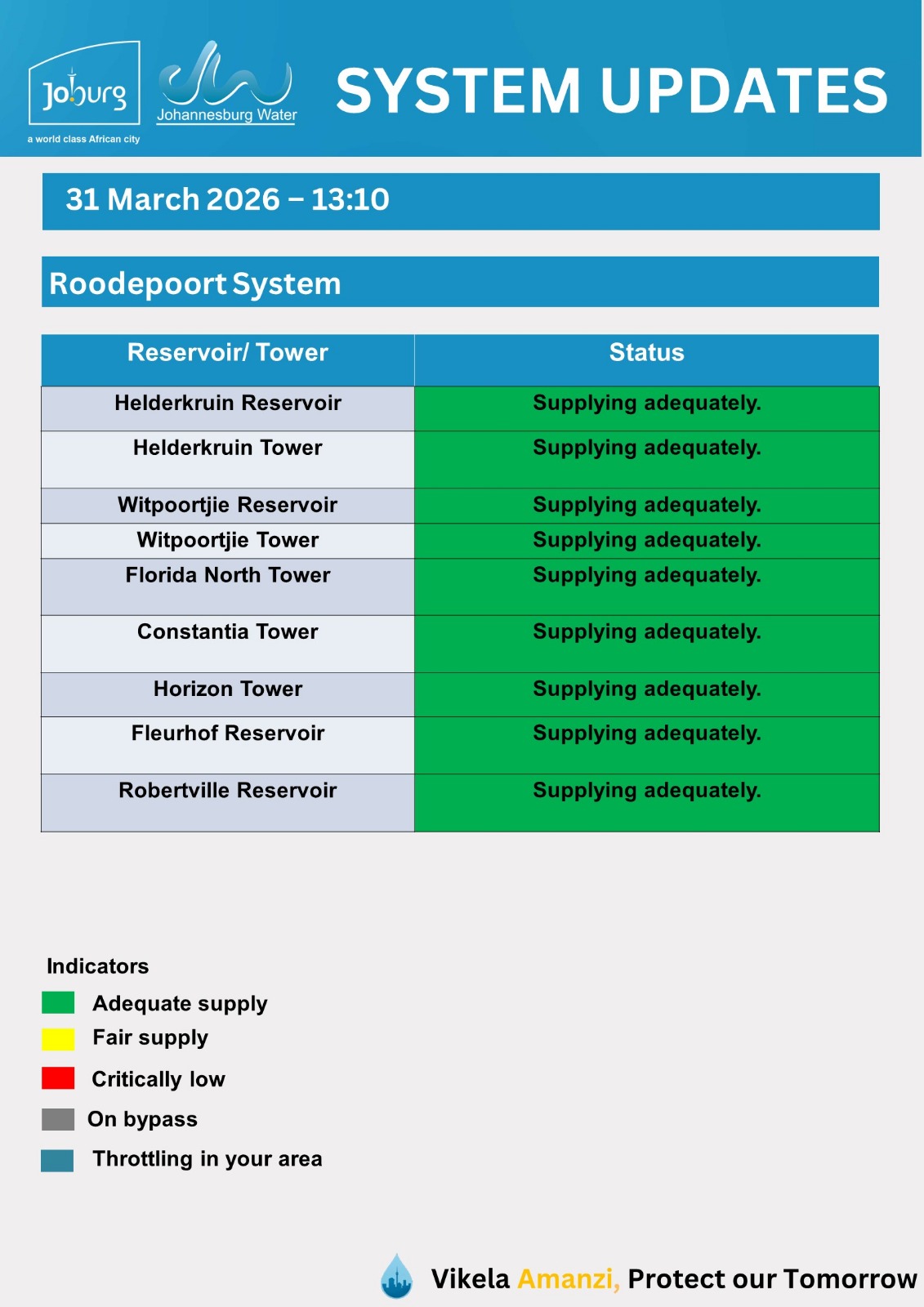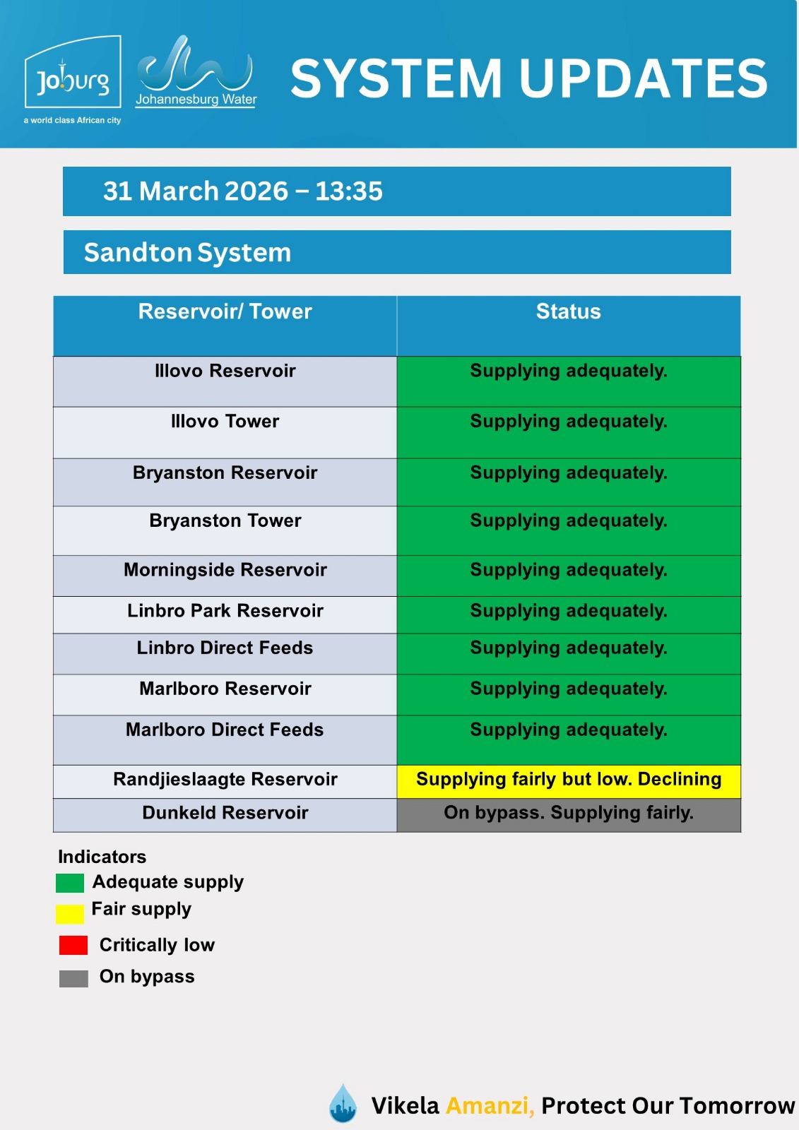 Please use the fault@jwater.co.za for logging water related incidents only