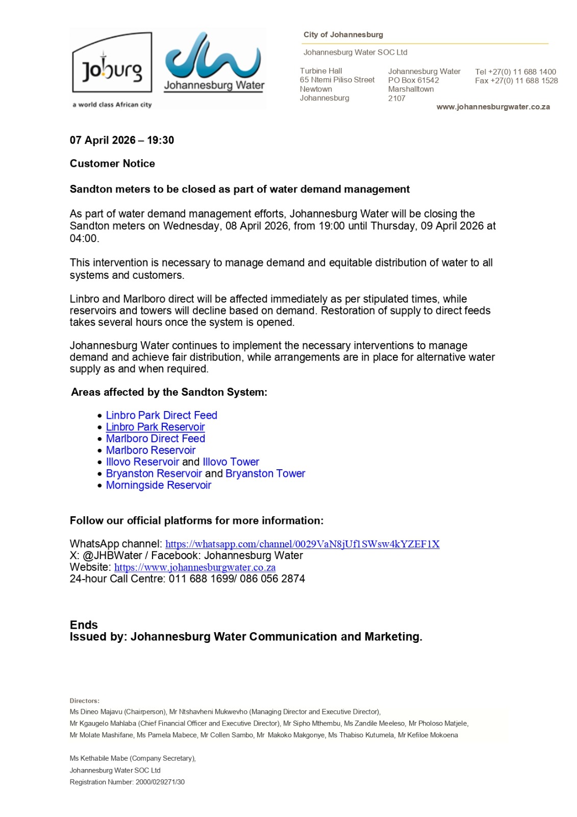 Customer Notice 7 April 2026
