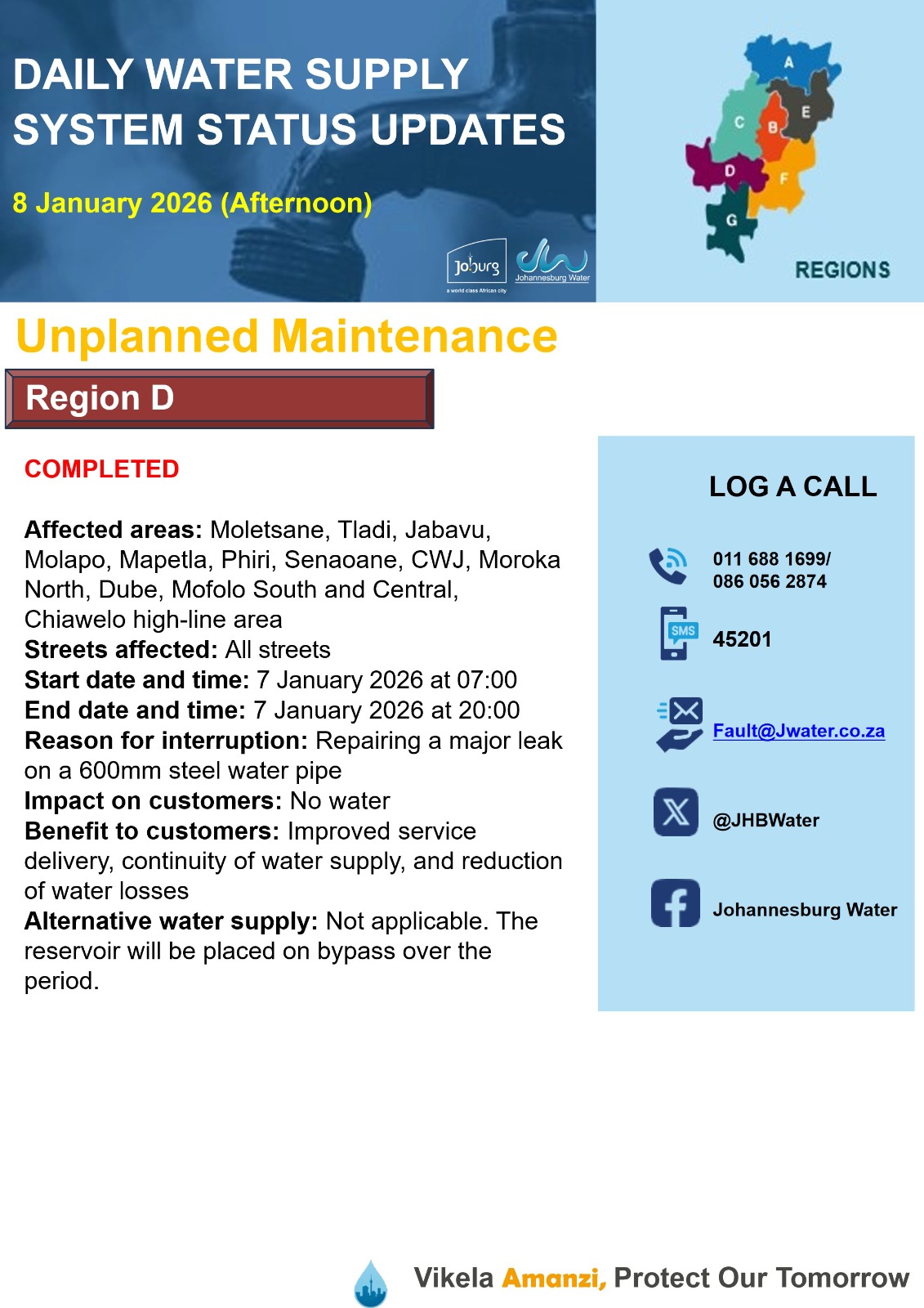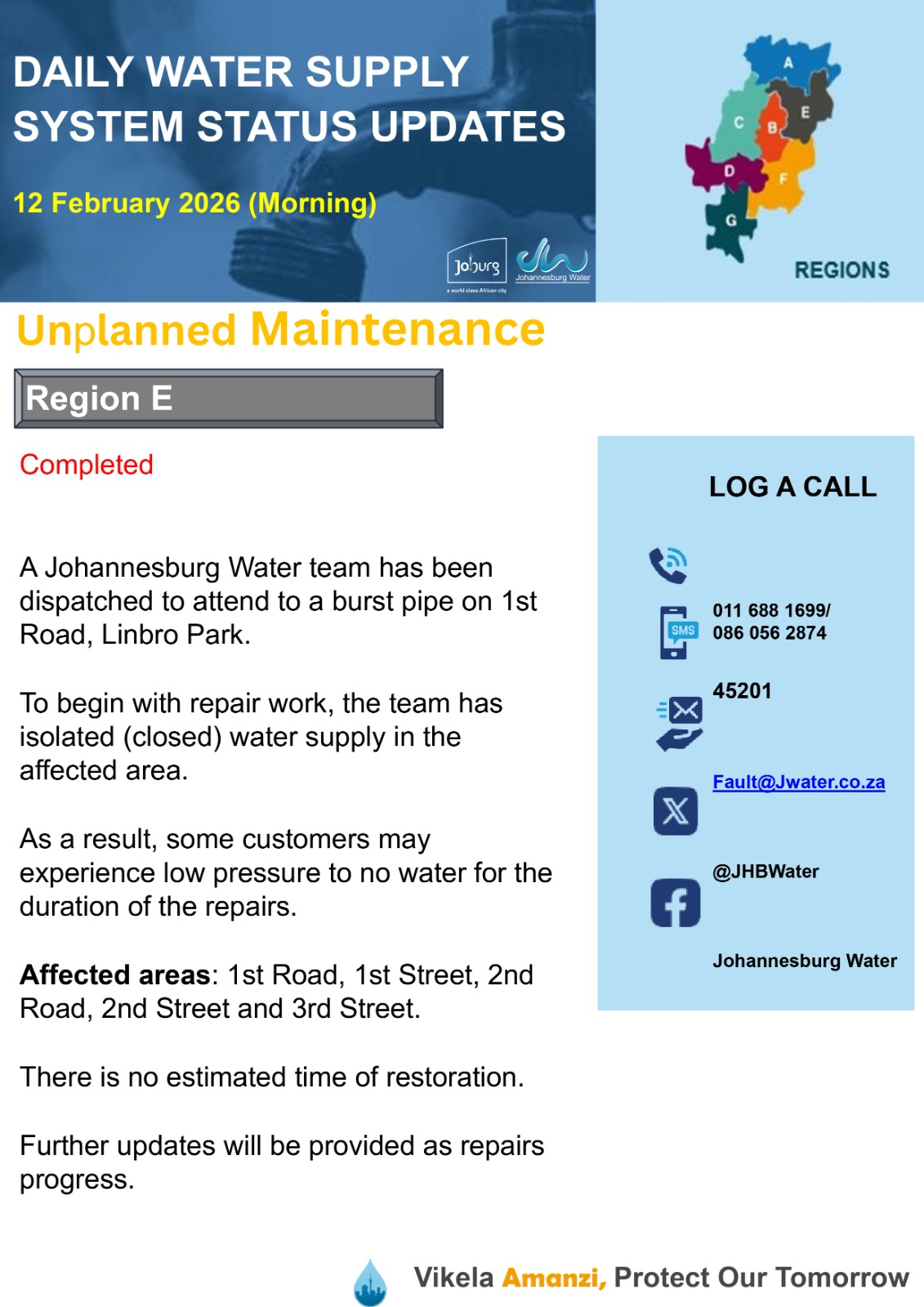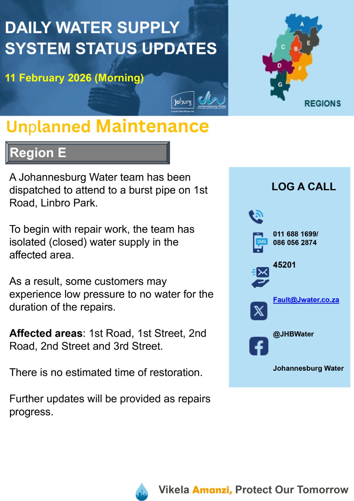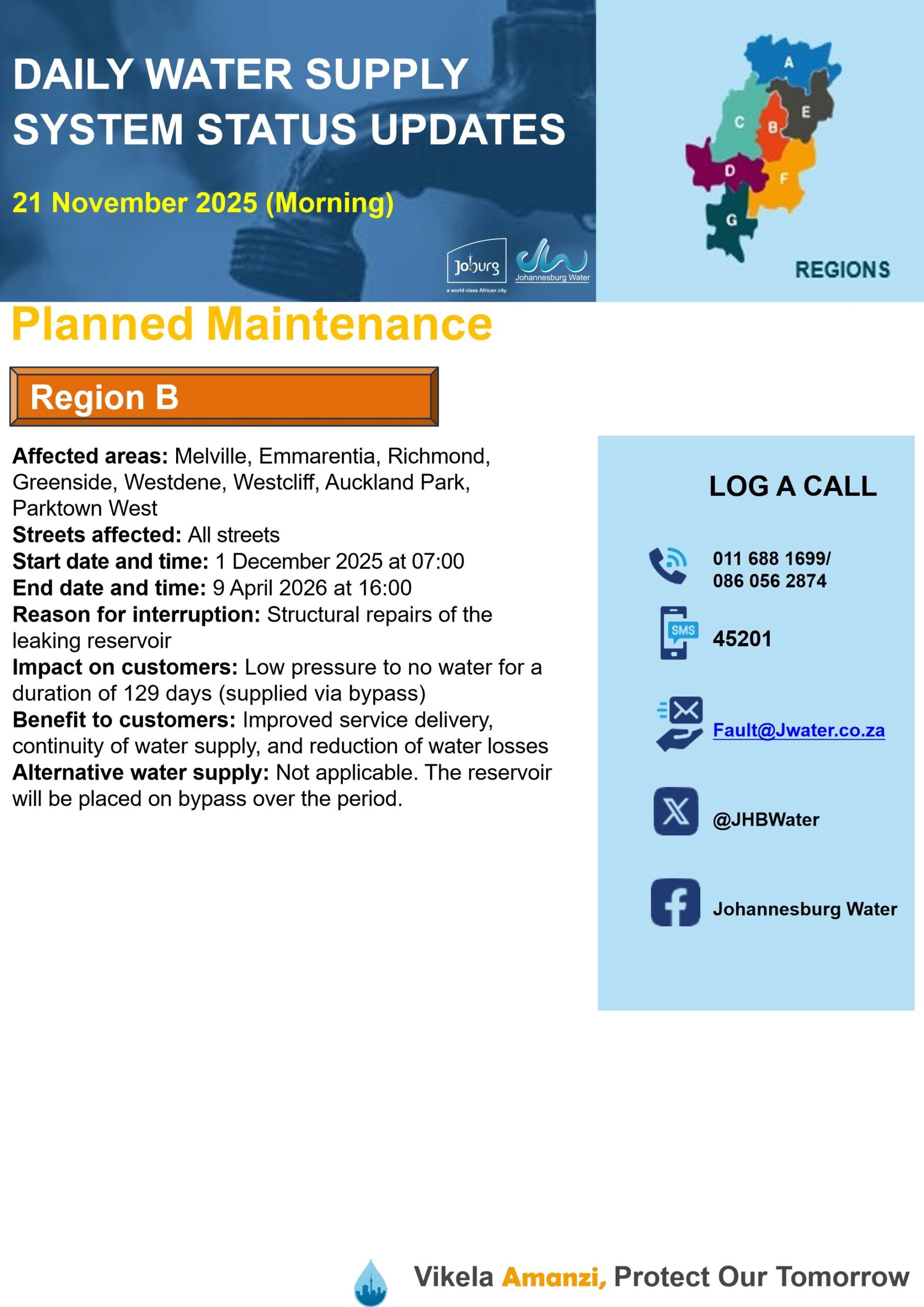 Daily Water Notice 1 December 2025 – Morning