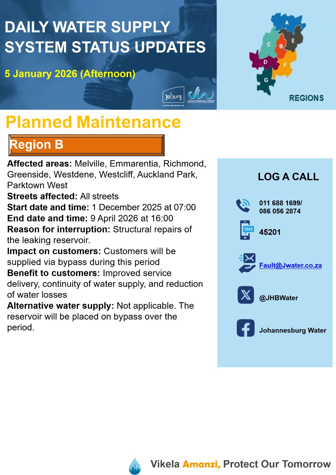 Daily Water Notice 5 December 2025 – Morning