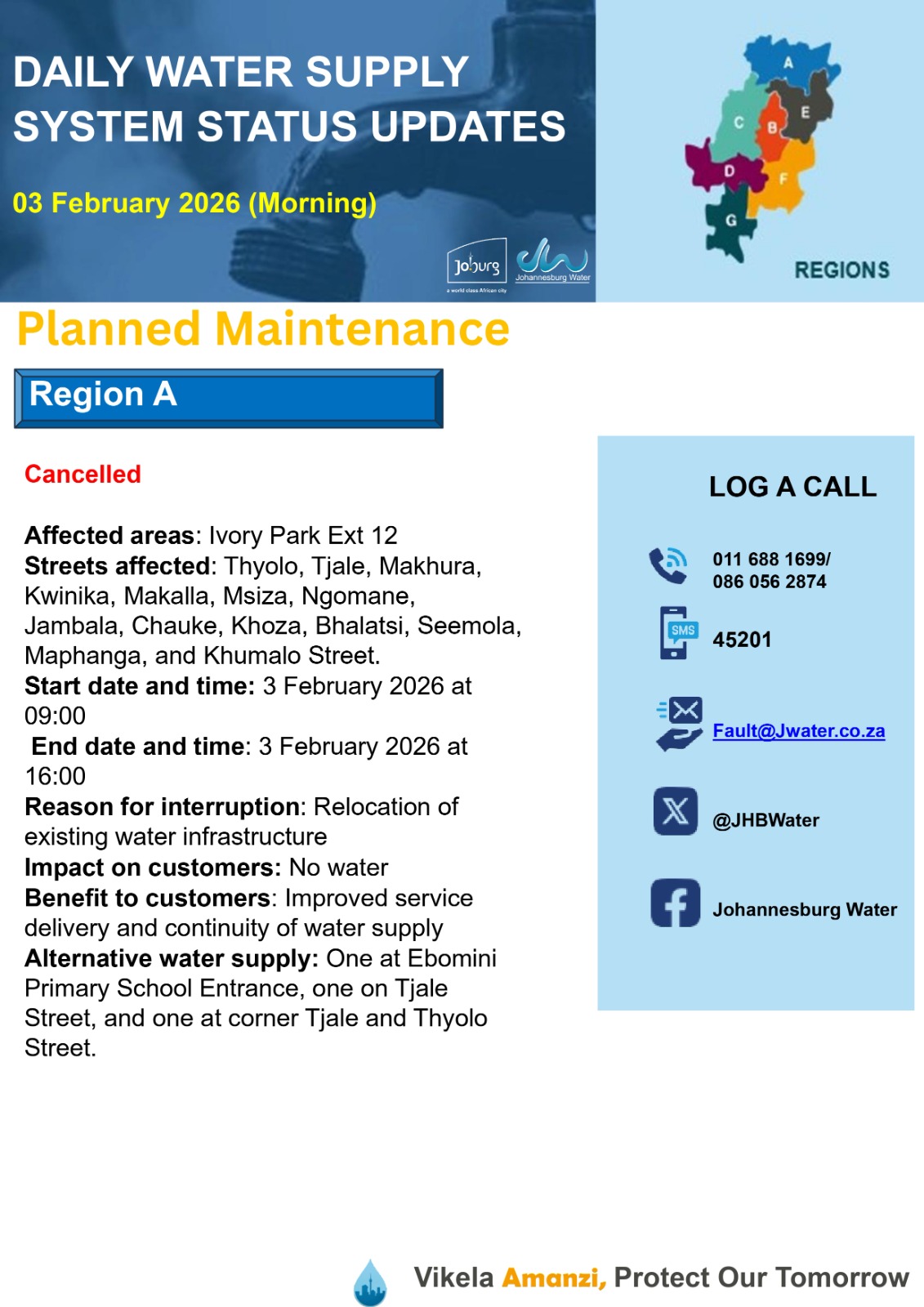 Daily Water Notice 3 December 2025 – Morning