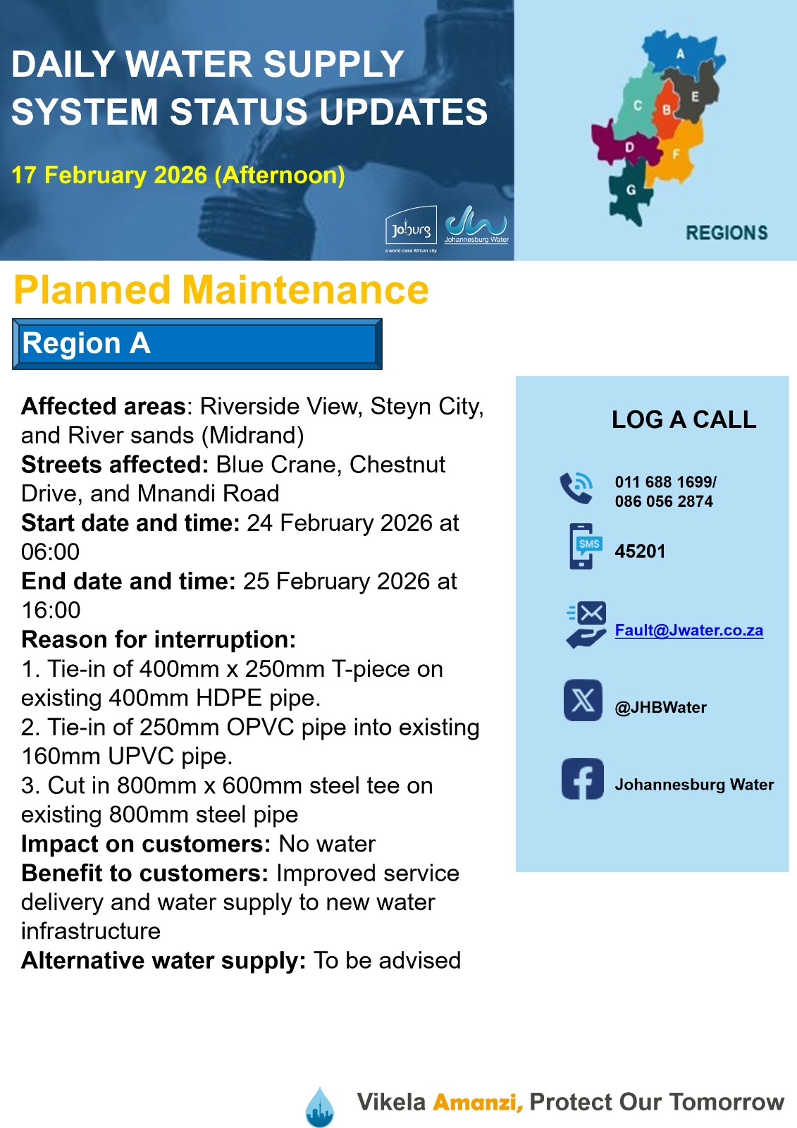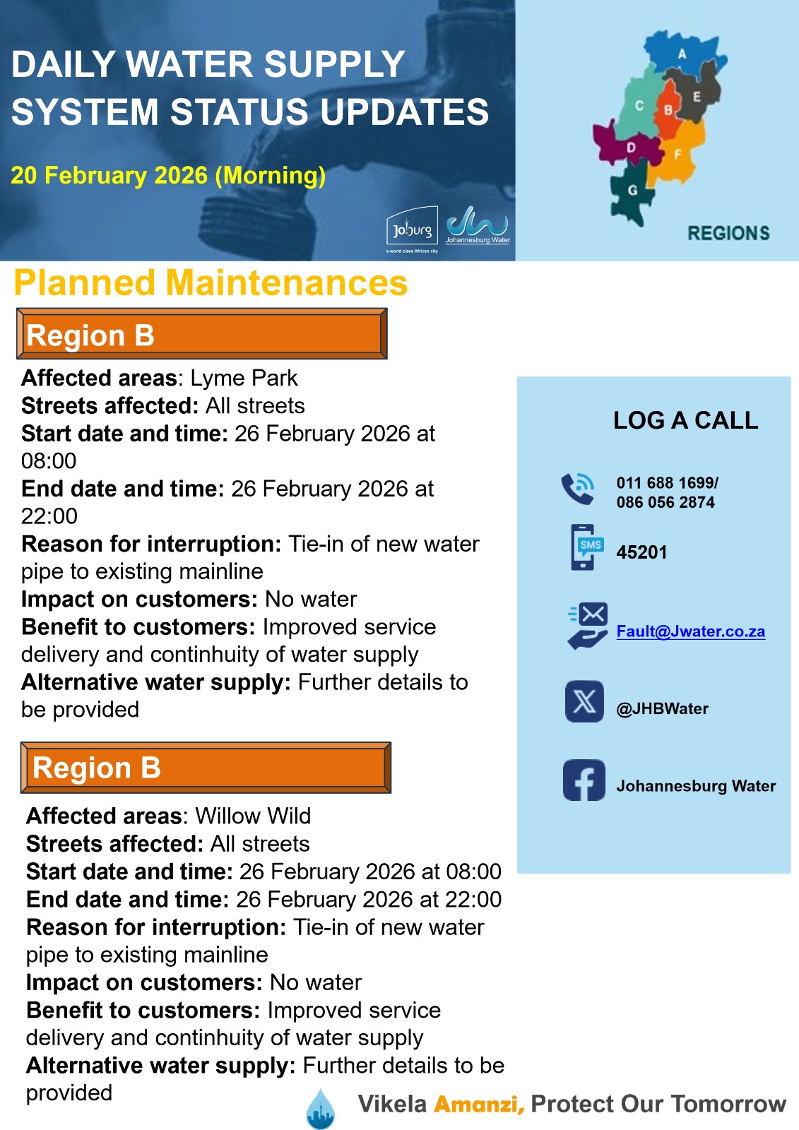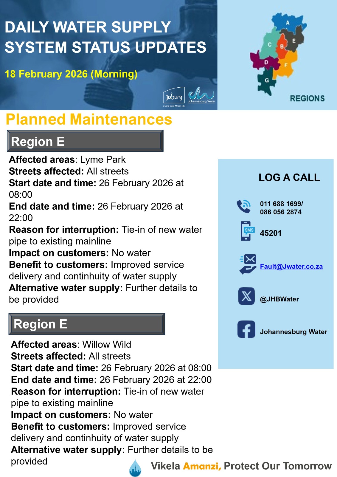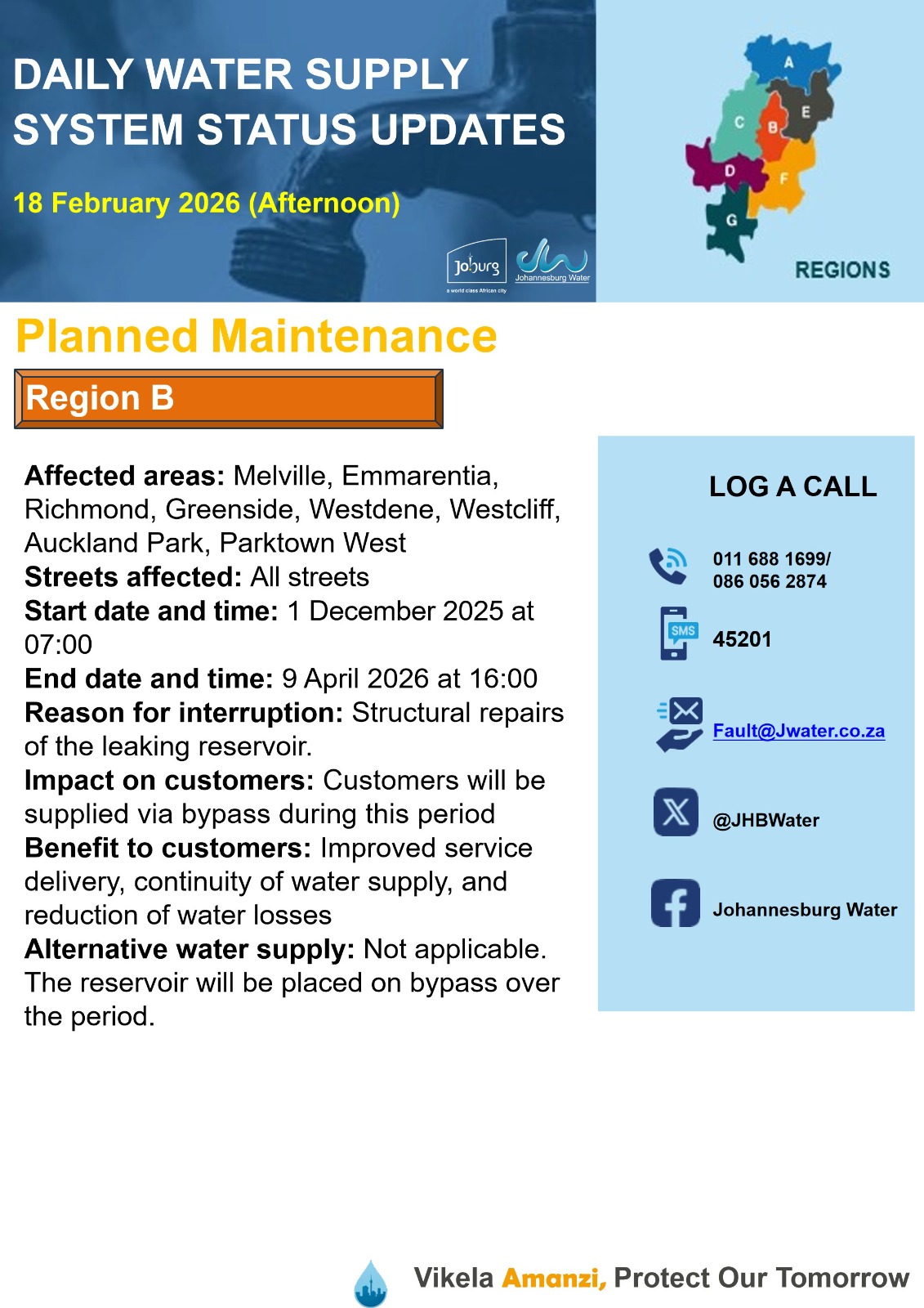 Daily Water Notice 15 December 2025 – Morning