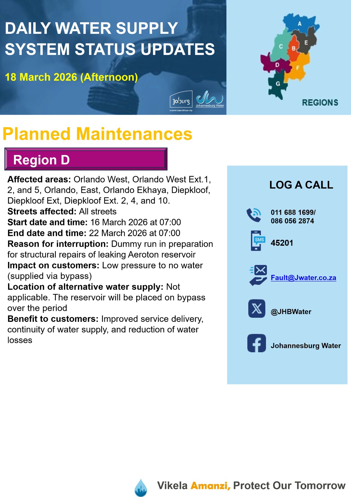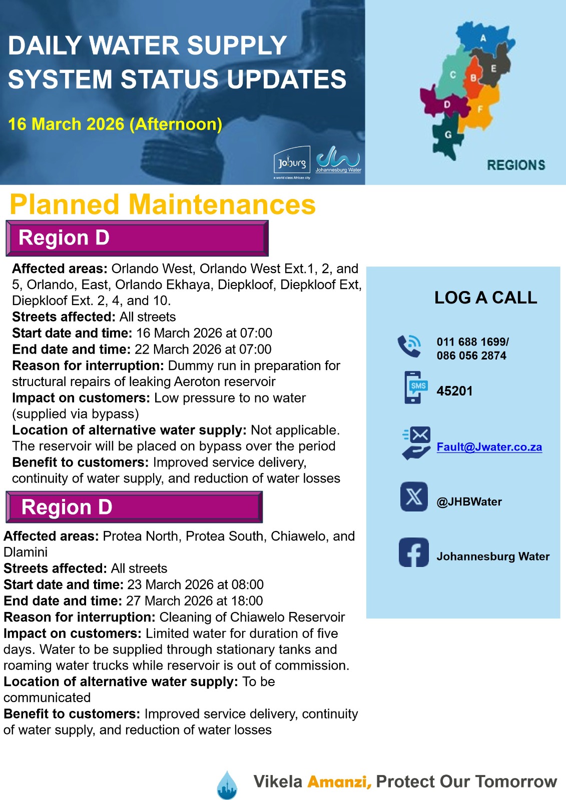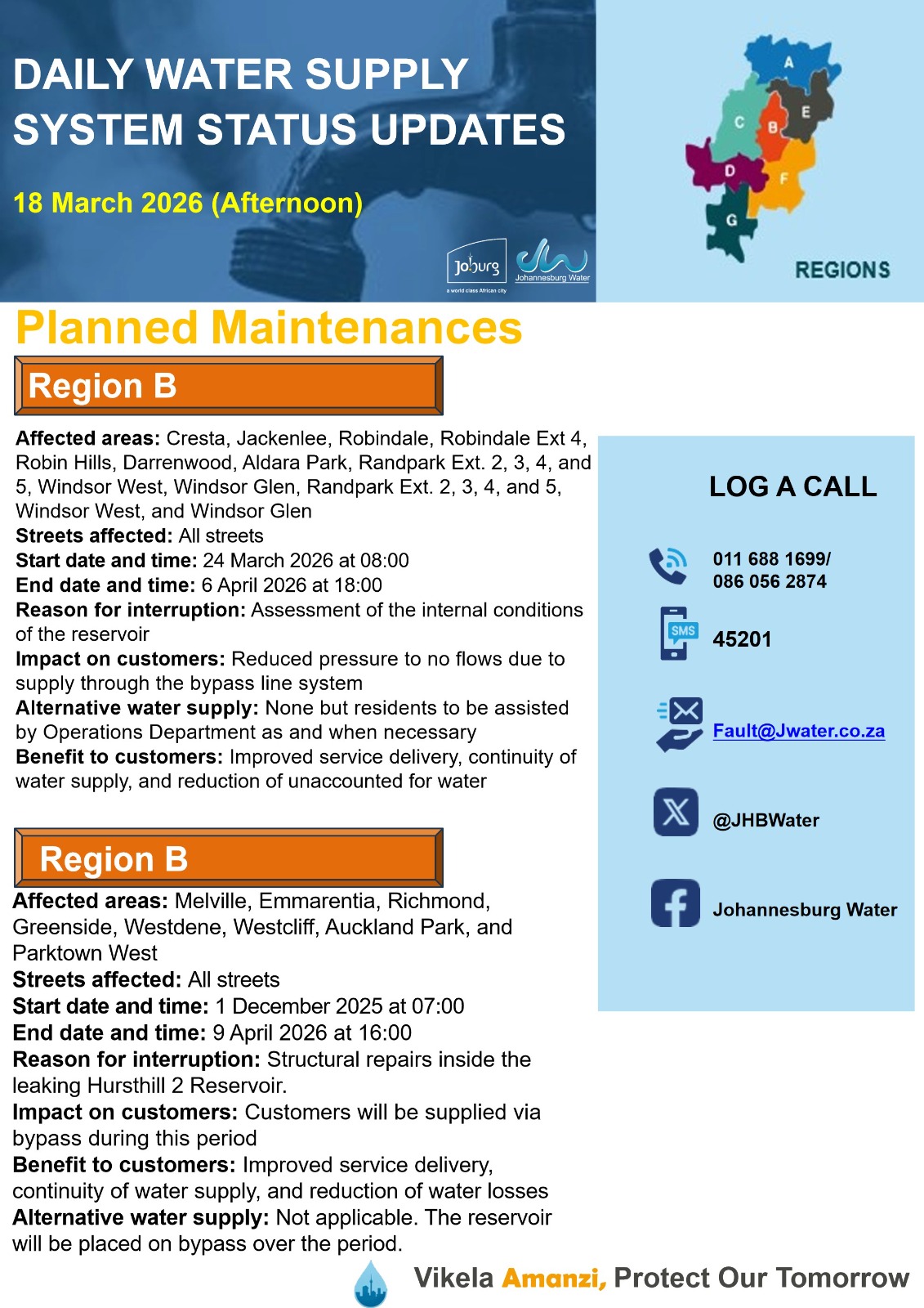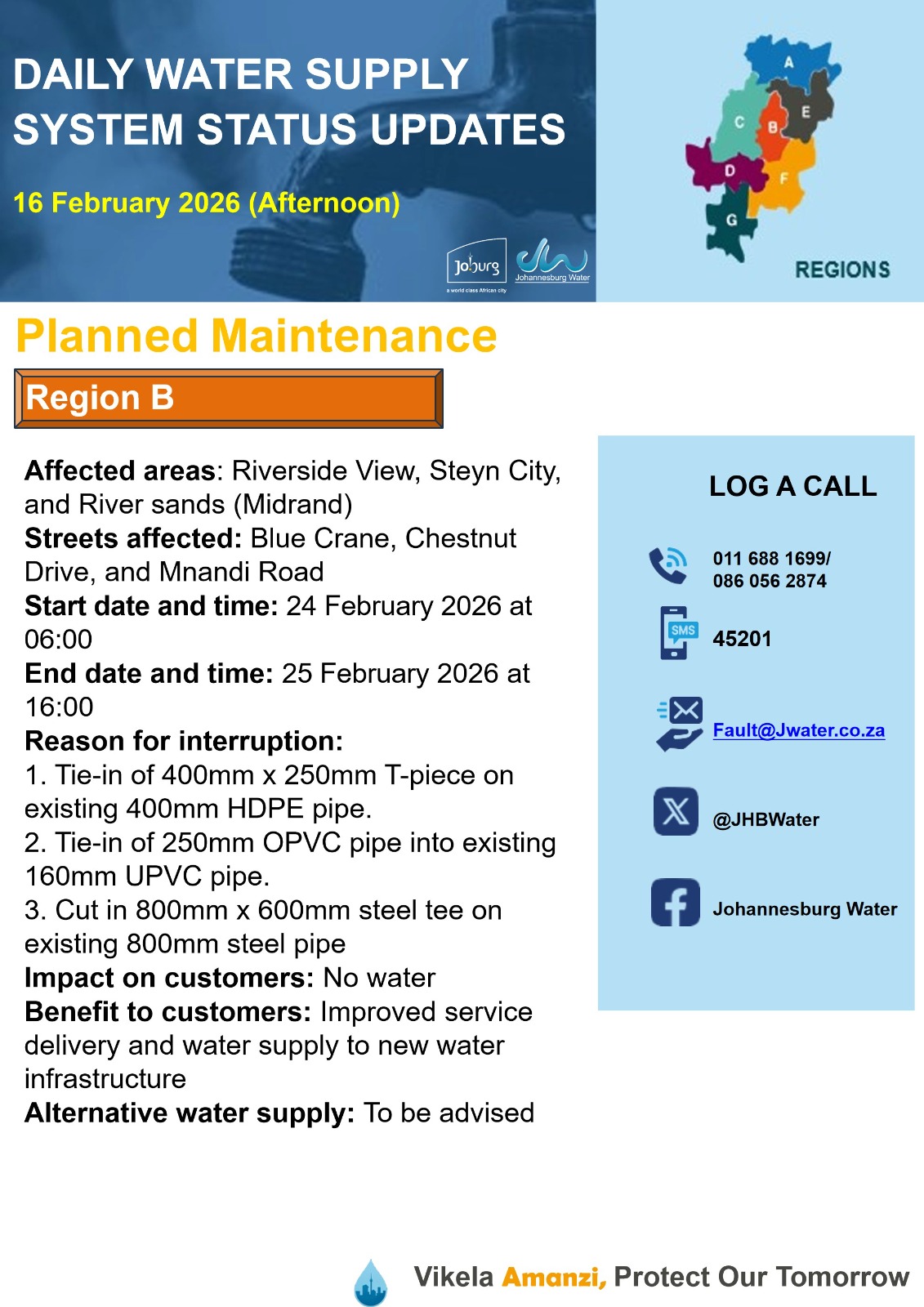 Daily Water Notice 15 December 2025 – Morning
