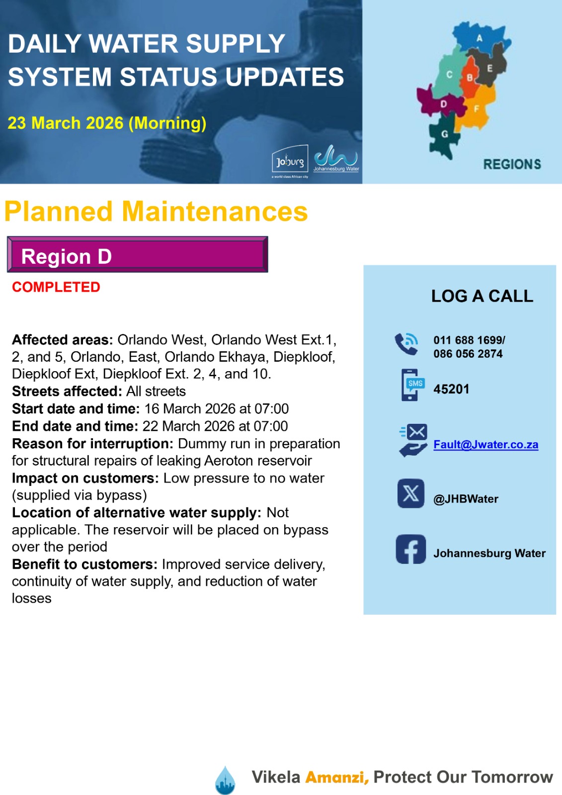 Daily Water Notice 23 December 2025 – Morning
