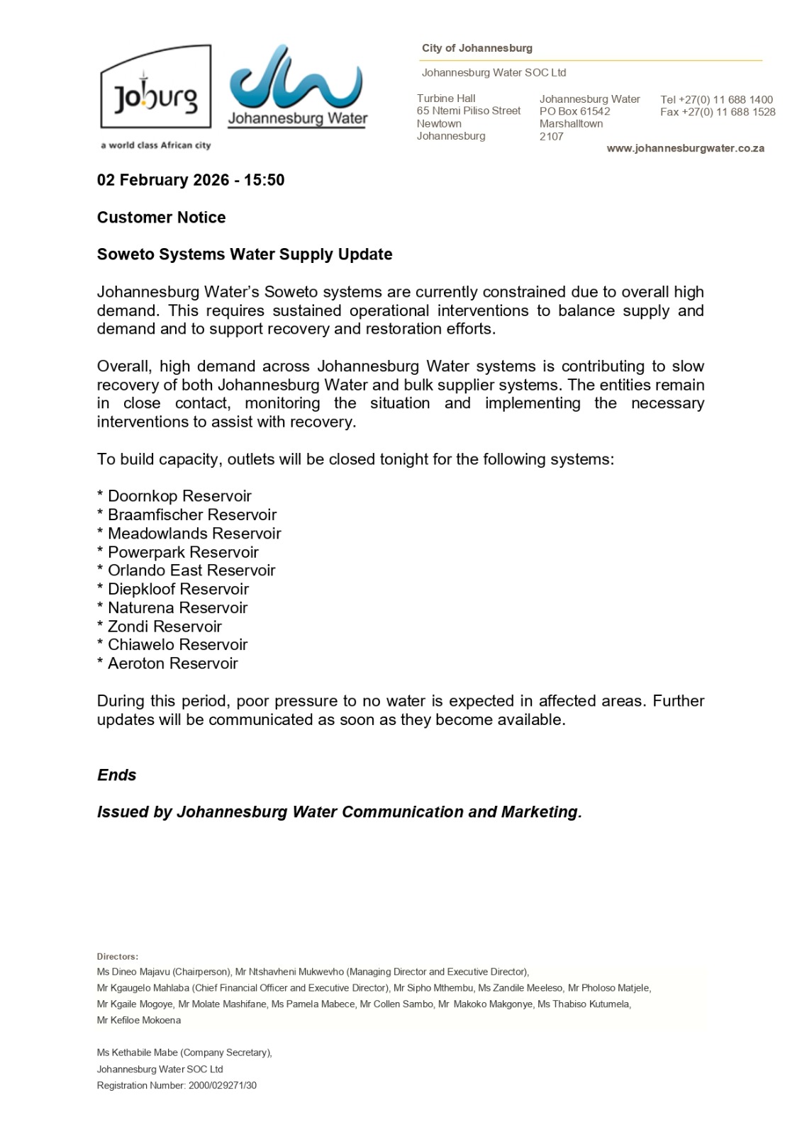 by Malehlohonolo Mohomane | Feb 3, 2026 | Customer Notices 2026