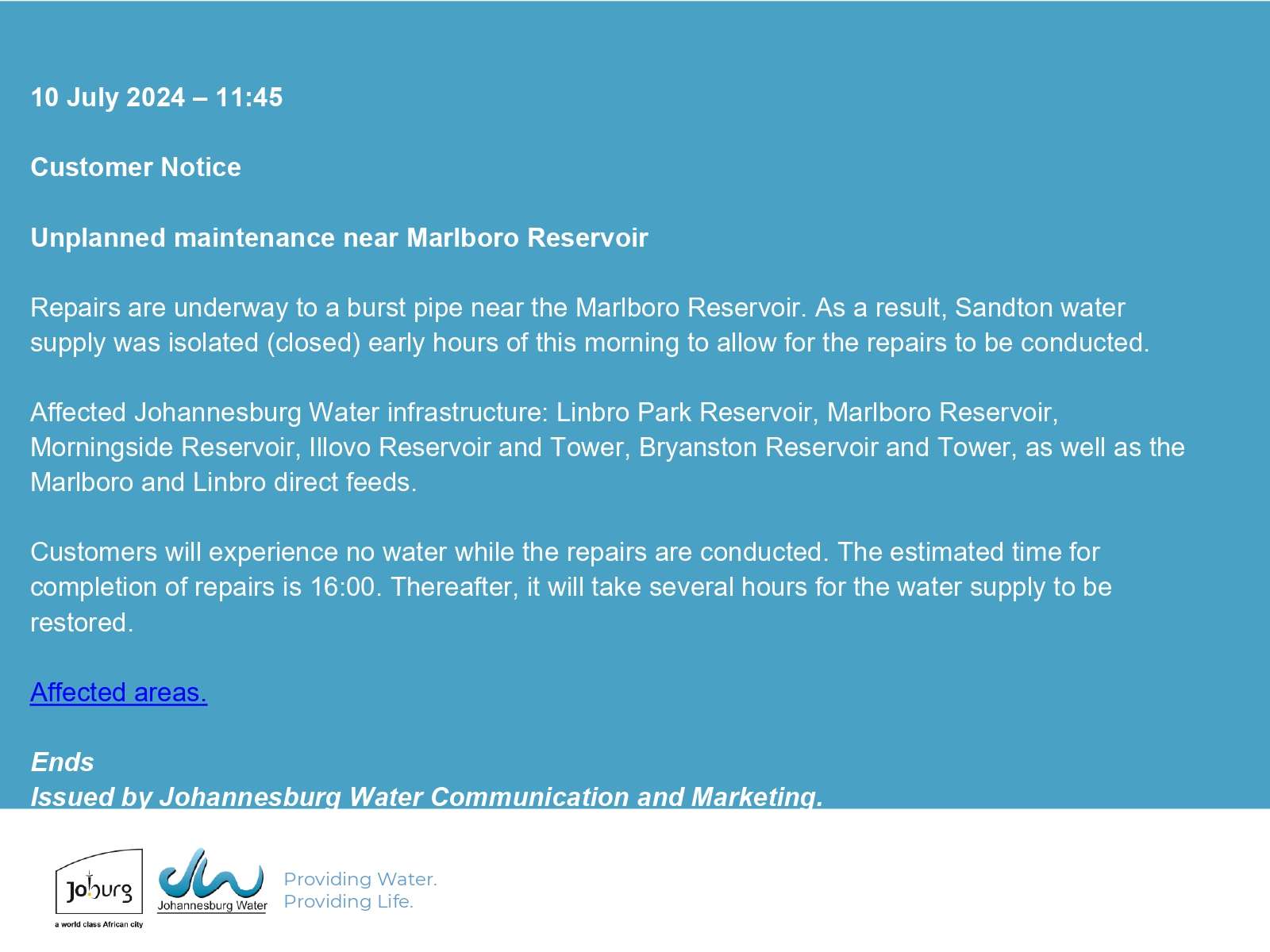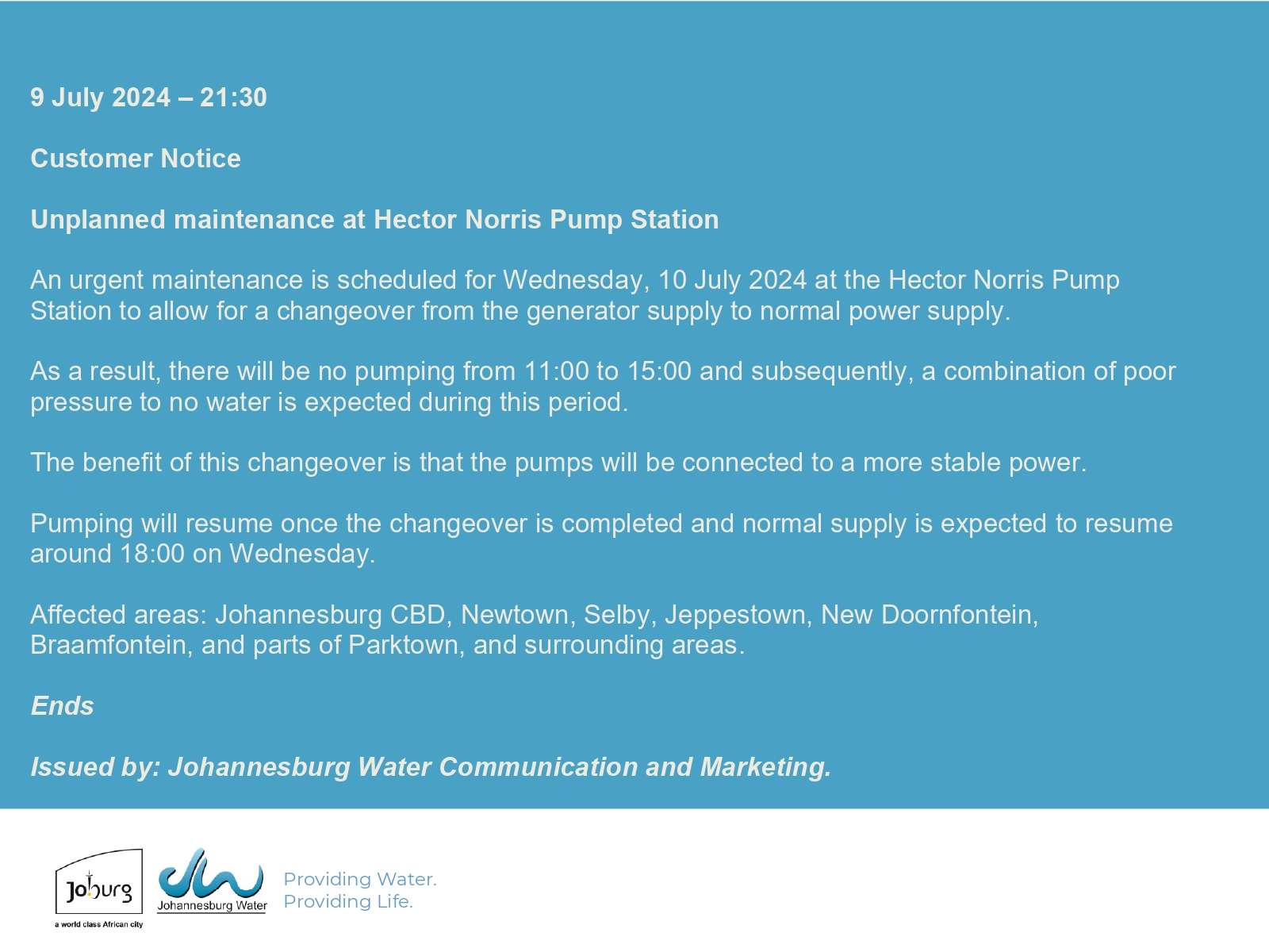 All Johannesburg Water systems that are supplied by Eikenhof are improving and supplying fairly, to normally. Johannesburg Water continues to monitor all systems.