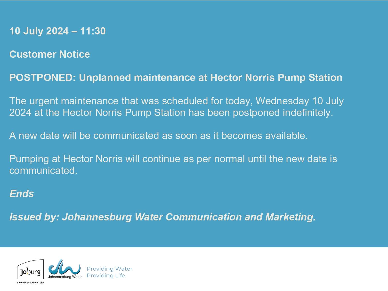 Subsequently, Eikenhof Pump Station is pumping at 100%.